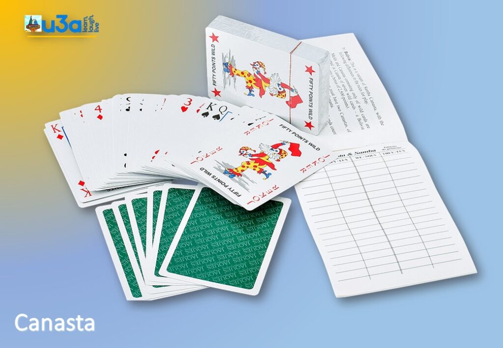 The Canasta Club is a friendly group. We play for two hours twice a month at the Caxton Club. We welcome beginners and teach them how to play. As we meet over lunchtime sandwiches and cake are served, we have cakes made by the members which are delicious. We always have a party just before Christmas of all Christmas food and chocolates. Going forward we would like to think we are all giving each other friendship and companionship whilst playing the game of Canasta. Lots of laughs and a good game of Canasta, you never know who'll win, that's why people enjoy it.