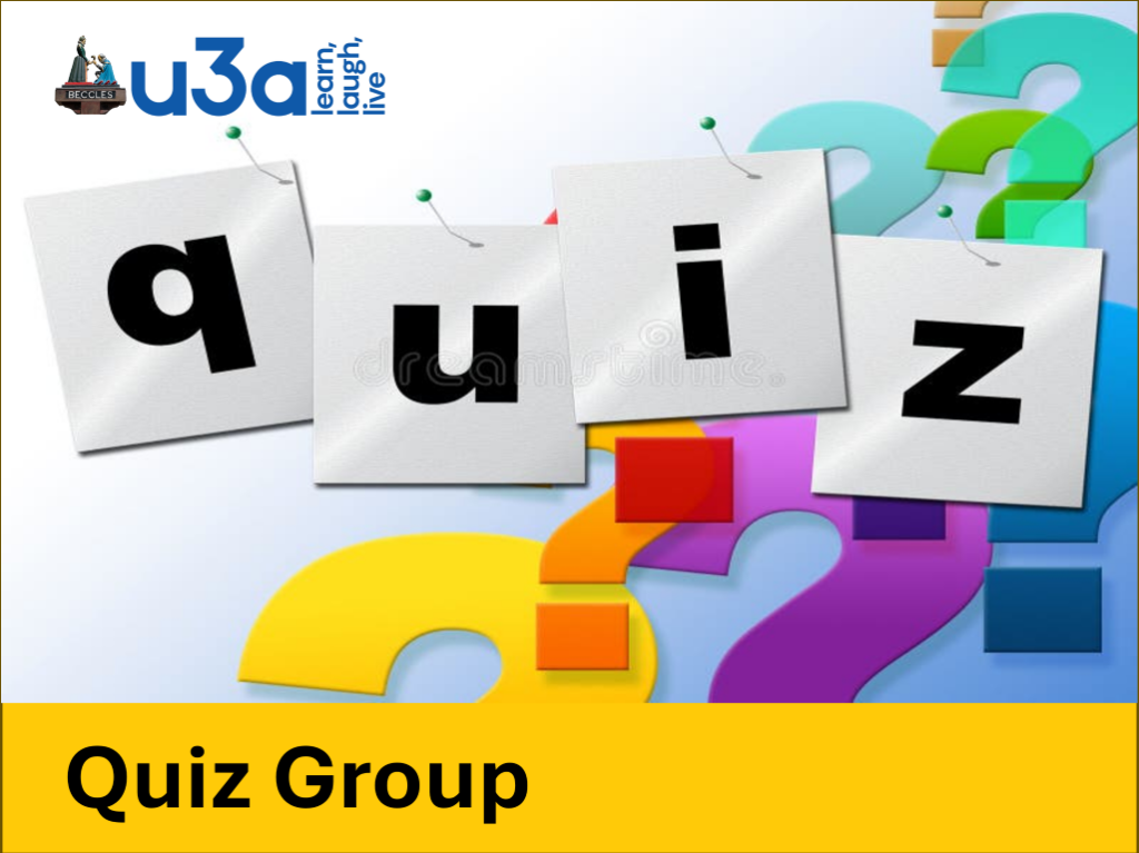 William Rouse, the quiz master, is a quiz organiser with years of experience and lots of quizzing material to hand. He has hosted quiz meetings for a variety of organisations, including Lowestoft u3a, and Oulton Broad.